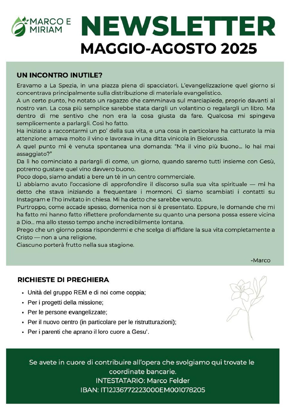 NEWSLETTER dei nostri missionari Marco&Miriam